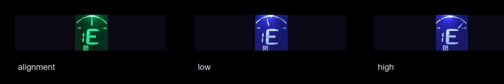 Valittavissa 5 eri viritystoimintoa: kromaattinen, kitara, basso, viulu ja ukulele