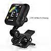 Aroma AT-102 ladattava kromaattinen viritysmittari kiinnittyy klipsin avulla soittimeen ja virittää värähtelyanturin avulla, mikä mahdollistaa tarkan virityksen meluisassakin ympäristössä