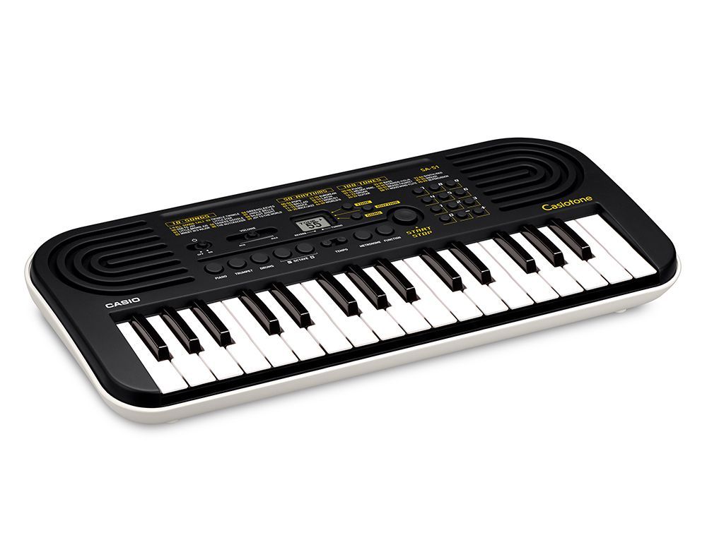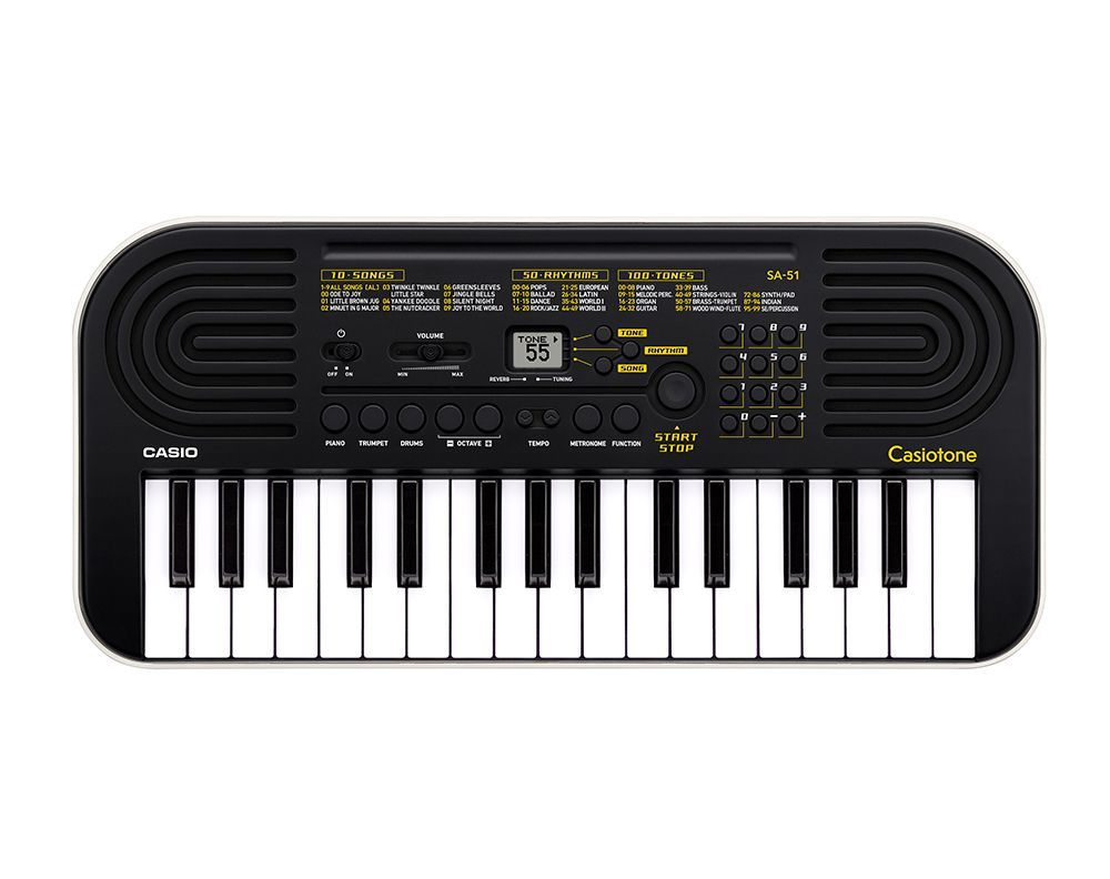 Casio SA-51 on suosittu lapsiystävällinen kosketinsoitin mini-kokoisilla koskettimilla ja rumpupadeilla. Soittimessa on runsaasti eri soitinääniä ja rytmikuvioita, jotka herättävät lapsen kiinnostuksen musiikkiin. Melody-off -toiminnon avulla voi harjoitella helppoja musiikkikappaleita. Soittimesta löytyy myös metronomi, hienoviritys, oktaavialan valinta sekä Reverb-tilaefekti.