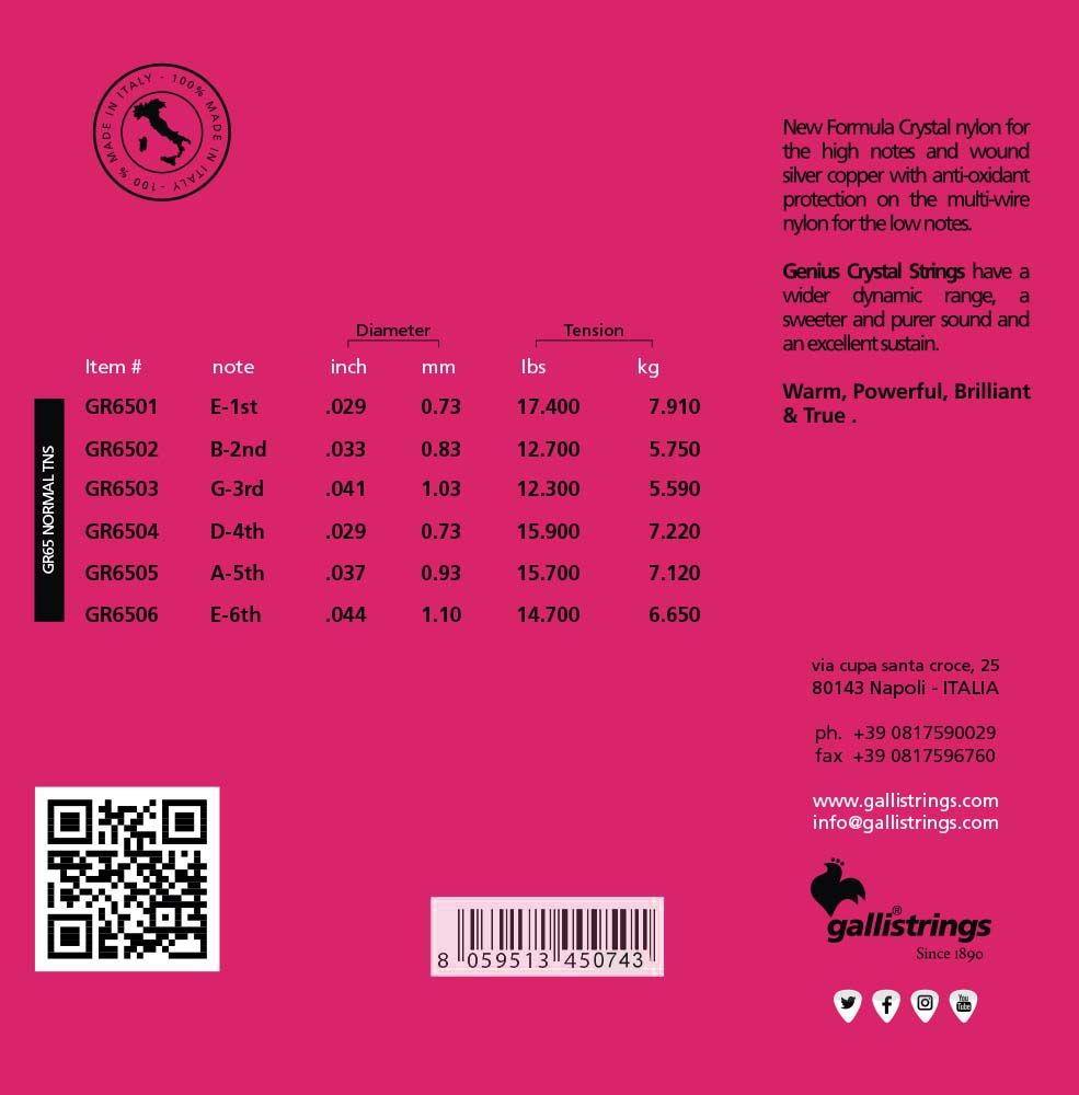 Galli Strings GR-65 Genius normal tension nylon kielet