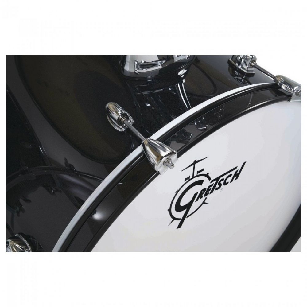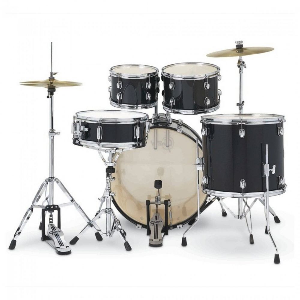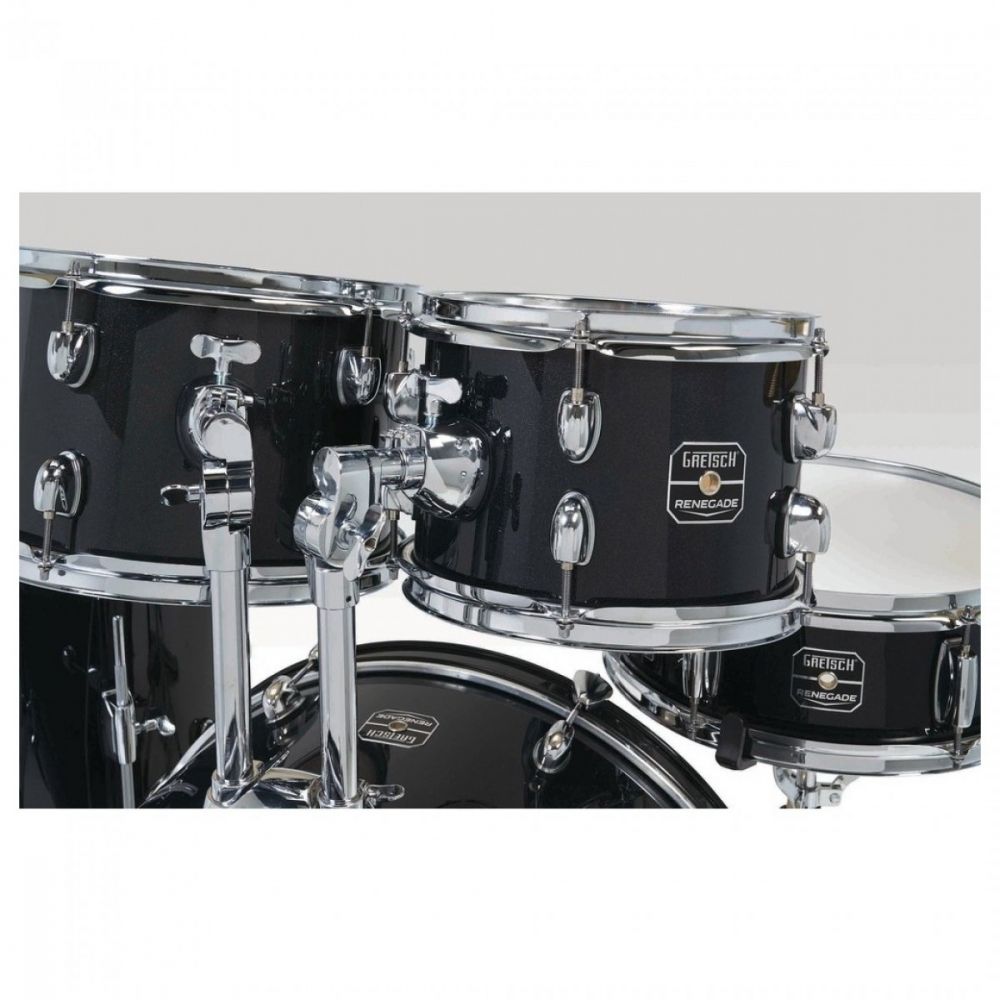 Gretsch Renegade Black Mist 20" rumpusetti sisältää 5-osaiset rummut, symbaalitelineet ja symbaalit (Hihat ja Crash/Ride), bassorummun pedaalin ja rumpujakkaran, siis kaiken tarvittavan.