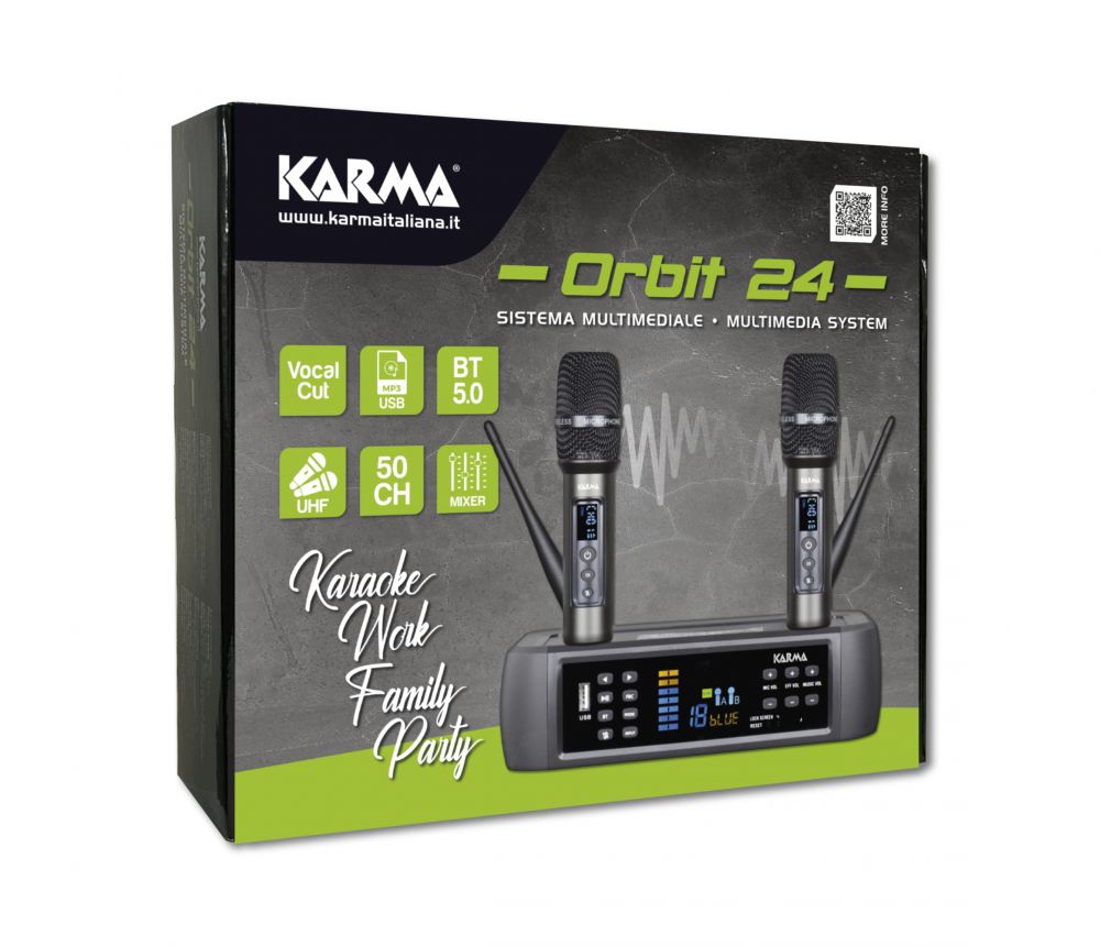 Karma Orbit 24 on suunniteltu erityisesti karaokeen, juontoihin ja pieniin yleisötilaisuuksiin. Sen suurin etu on yksinkertaisuus: et tarvitse erillistä kallis-arvoista mikseriä säätääksesi kahden puhujan välistä äänenvoimakkuutta, sillä voit tehdä sen suoraan vastaanottimen etupaneelista.