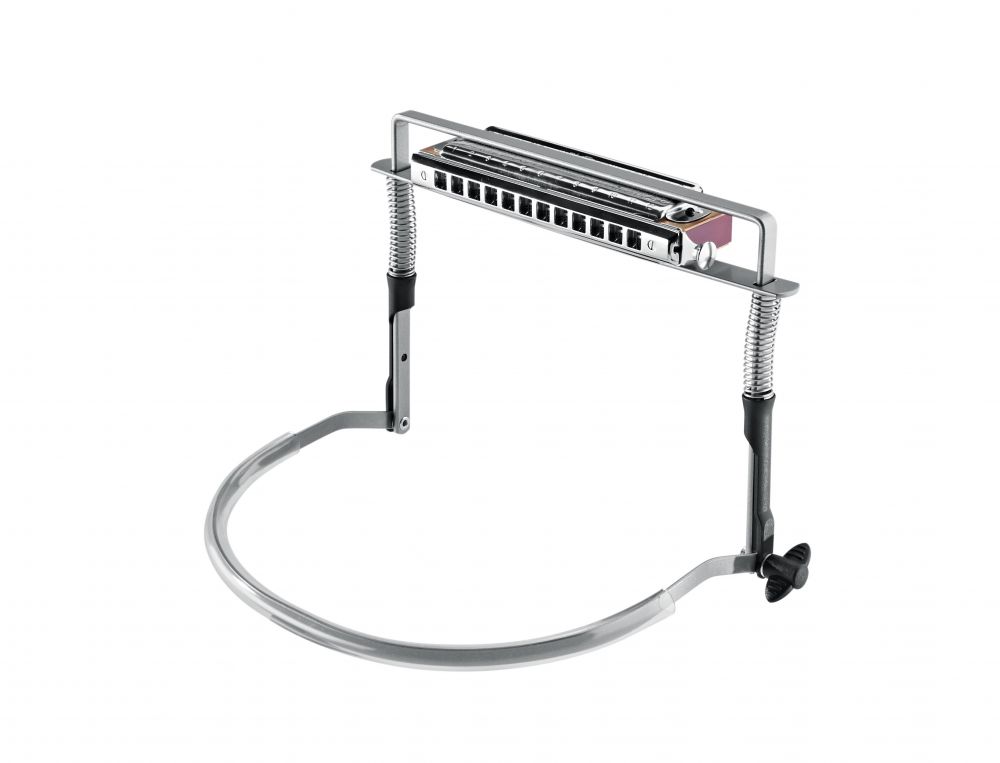 Sopii useisiin huuliharppumalleihin. Pehmustettu kaulakehys. Jousijännityksellä säädettävä soittimen pidike.