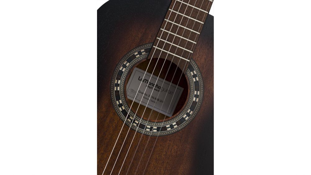 La Mancha ei ole säästellyt yksityiskohdissa. Kitara on varustettu laadukkailla Savarez-kielillä ja Nubone-satulalla, jotka takaavat puhtaan vireen ja erinomaisen resonanssin. Ovangkol-otelauta ja mustat yksityiskohdat, kuten niklatut virityskoneistot mustilla nupeilla, viimeistelevät modernin ja arvokkaan ilmeen.