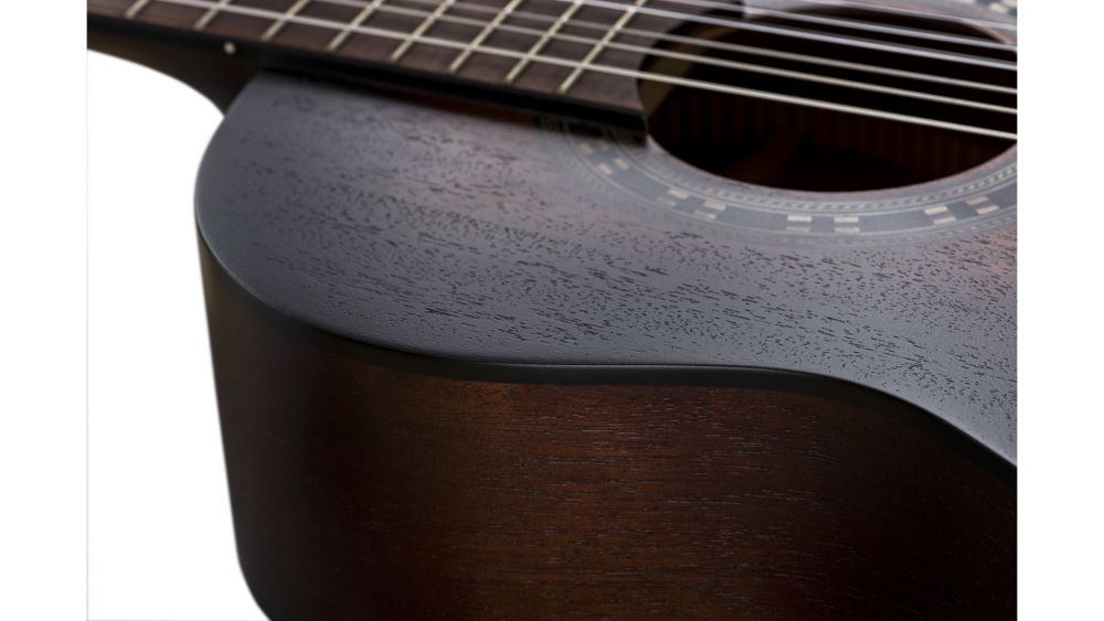 Huippuluokan viimeistely: Tyylikäs Mahogany Burst -väritys ja avohuokoinen mattapinta (Open Pore Matte) antavat puun hengittää ja tuntua luonnolliselta käsissäsi.