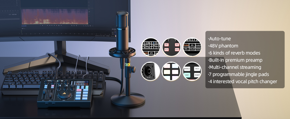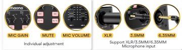Maono tuo markkinoille ensimmäisenä maailmassa uskomattoman monipuoliset äänikortit streamaajille, podcastin tekijöille, musiikin harrastajille, pelaajille, vlogaajille jne. Maono AM-100 äänikorttiin saat liitettyä läppärin, padin, älypuhelimen tai pöytäkoneen. Saat liitettyä laitteita jopa kolme samaan aikaan. Maono AM-100 toimii sekä USB-virralla että myös akulla, joten voit tehdä äänityksiä tai striimauksia vaikka puistossa ilman sähkövirtaa. Maono AM-100 sopii helppokäyttöiseen takia täydellisesti striimaajan uraa aloittavalle. Maono AM-100 on Maono malleista paras ja sopii myös ammattimaiseen käyttöön. Myös esim. sähkökitaran yhdistäminen onnistuu Maonocastereiden avulla padiin tai puhelimeen.