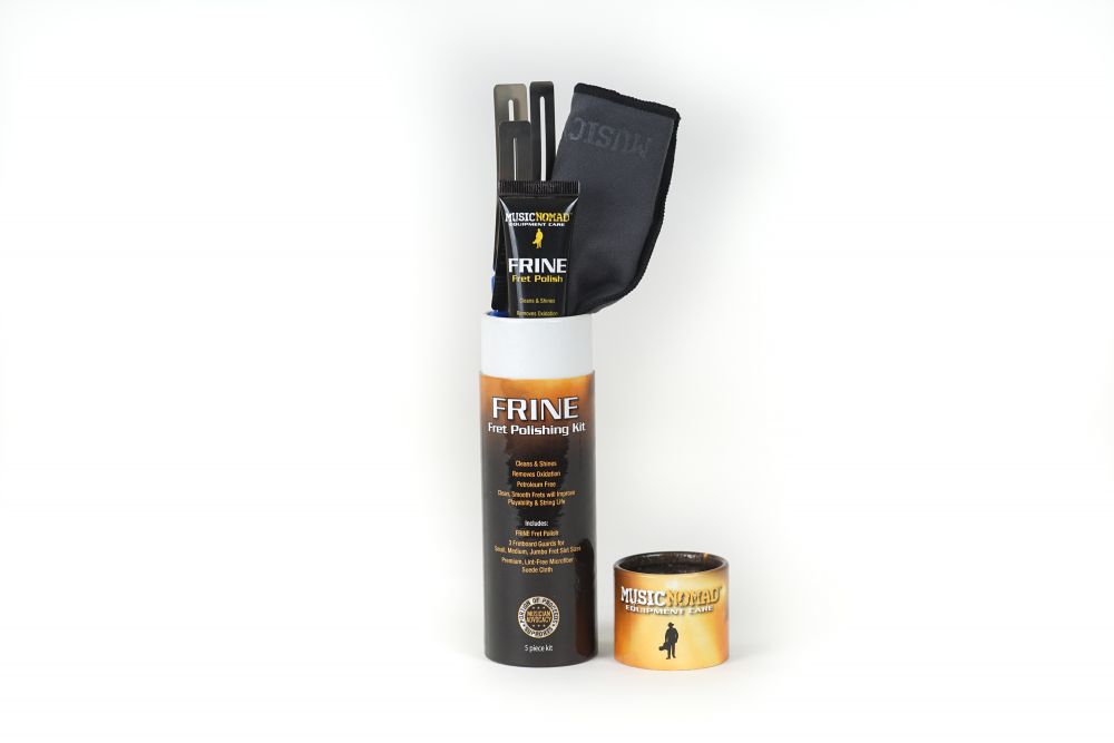 FRINE Fret Polish – Vallankumouksellinen, petroliton nauhankiilloke, joka poistaa nopeasti hapettuman, lian ja rasvan. Mikrohienot kiillotuspartikkelit tekevät kielten venytyksistä ja vibratosta sulavampia sekä pidentävät kielten käyttöikää.