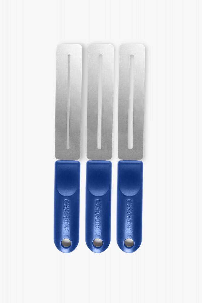 3 kpl GRIP Fretboard Guard -suojia – Ergonomisella kahvalla varustetut otelautasuojat, jotka pitävät kädet poissa tieltä ja suojaavat puuta. Mukana suojat pienille, keskikokoisille ja jumbo-nauhoille.