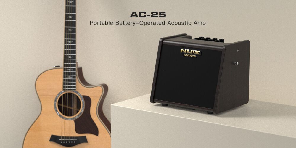 NUX AC-25 on verkkovirralla ja akulla toimiva pienikokoinen 25W akustinen vahvistin joka on tyylikäs ulkonäöltään ja upea soundiltaan.